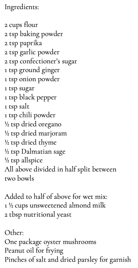 Vegan Oyster Mushroom “Fried Chicken” by Cameron Caley Michalak Posted on March 21, 2021March 21, 2021 View this post on Instagram A post shared by Liar, Liar, Plants on Fire (@plants_on_fire_blog) Fun Fact Source “Poultry Production and the Environment” – A Review by Animal Production and Health Division, Food and Agriculture Organization of the United Nations, Viale delle Terme di Caracalla, 00153 Rome, Italy Share this: Share on X (Opens in new window) X Share on Facebook (Opens in new window) Facebook Like Loading... Related
