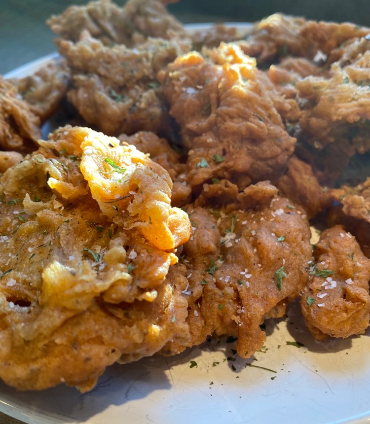 This is an exquisite vegan fried chicken that will have everyone asking for more! You’ll be looking around your house for more things to drop in the batter and fry. (Avocado is amazing!)